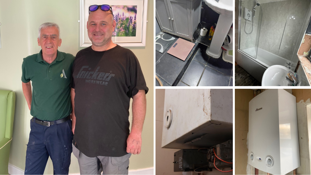 What followed was an incredible show of community spirit. Local plumber Ben Armstrong volunteered his time, and Graham from Plumbers Merchants in Hereford donated essential materials. Ashberry staff then joined in to help renovate the veteran’s bathroom, installing a new shower, taps, sink, and glass panel. With the remaining funds, they were able to completely refurbish the space- giving the veteran a home that felt not only warmer, but dignified and cared for.