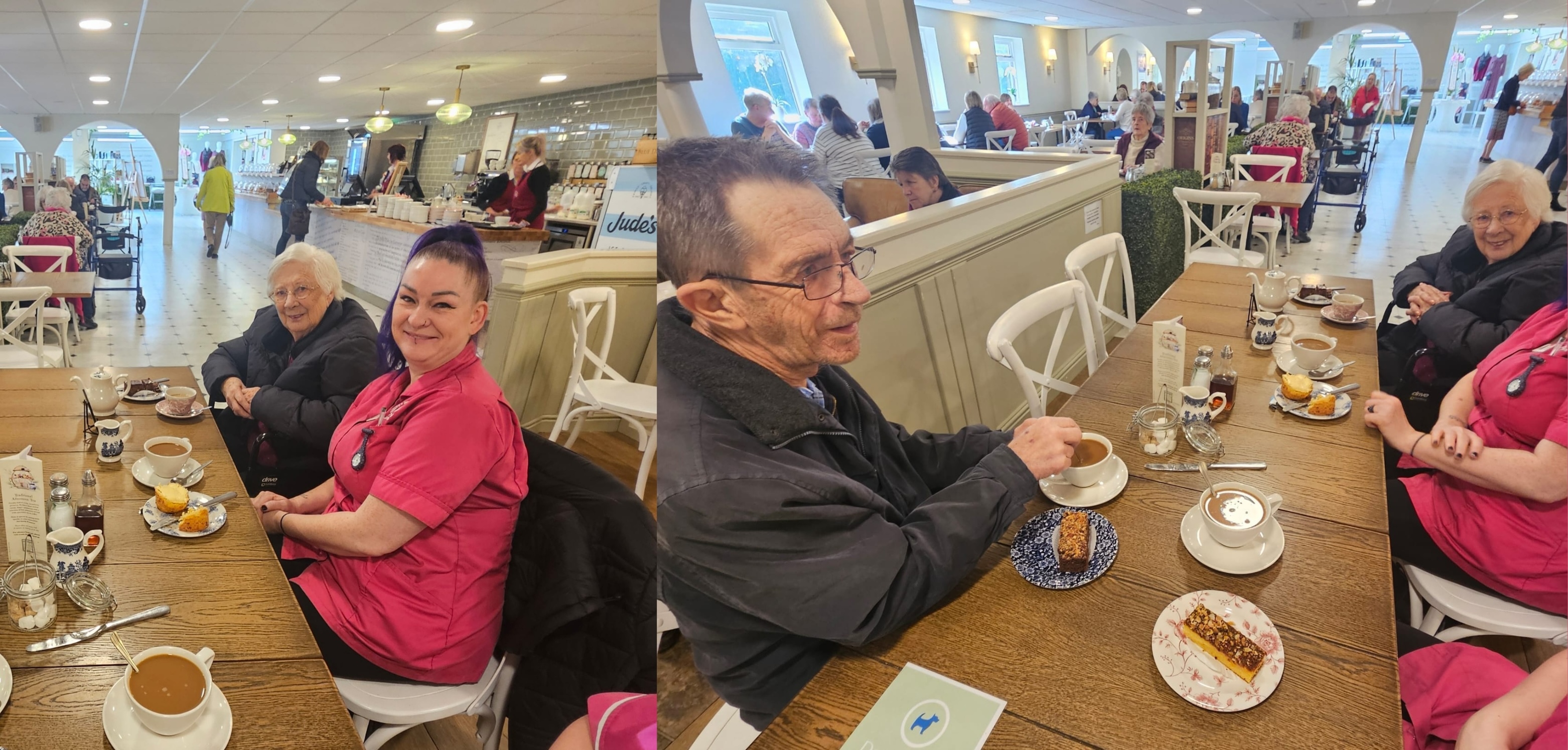 Some residents choose daily walks as their favourite outing, like Harry, who enjoys regular trips around the area with the well‑being team. And Julie and Harry shared a lovely moment over tea at Crumbles in Compton - proof that the simplest trips can create the warmest memories.