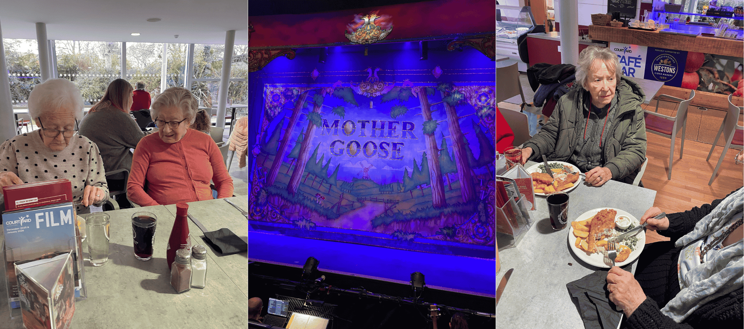 Residents enjoyed a magical trip to The Courtyard Hereford to watch the pantomime Mother Goose. Before the show, everyone chose their favourite dishes for lunch - fish and chips proving to be the clear favourite. At the interval, delicious ice cream made the perfect treat. The whole day was filled with laughter, excitement and shared joy.